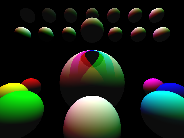 El mismo consta en un primer acercamiento a las técnicas de Raytraicing para el transporte de luz mediante el modelo de iluminación de Phong. En este caso serán trazadas 23 esferas en un lienzo de resolución VGA con su correspondiente intensidad de color a partir de la colisión de rayos de luz de diferentes colores con las mismas.